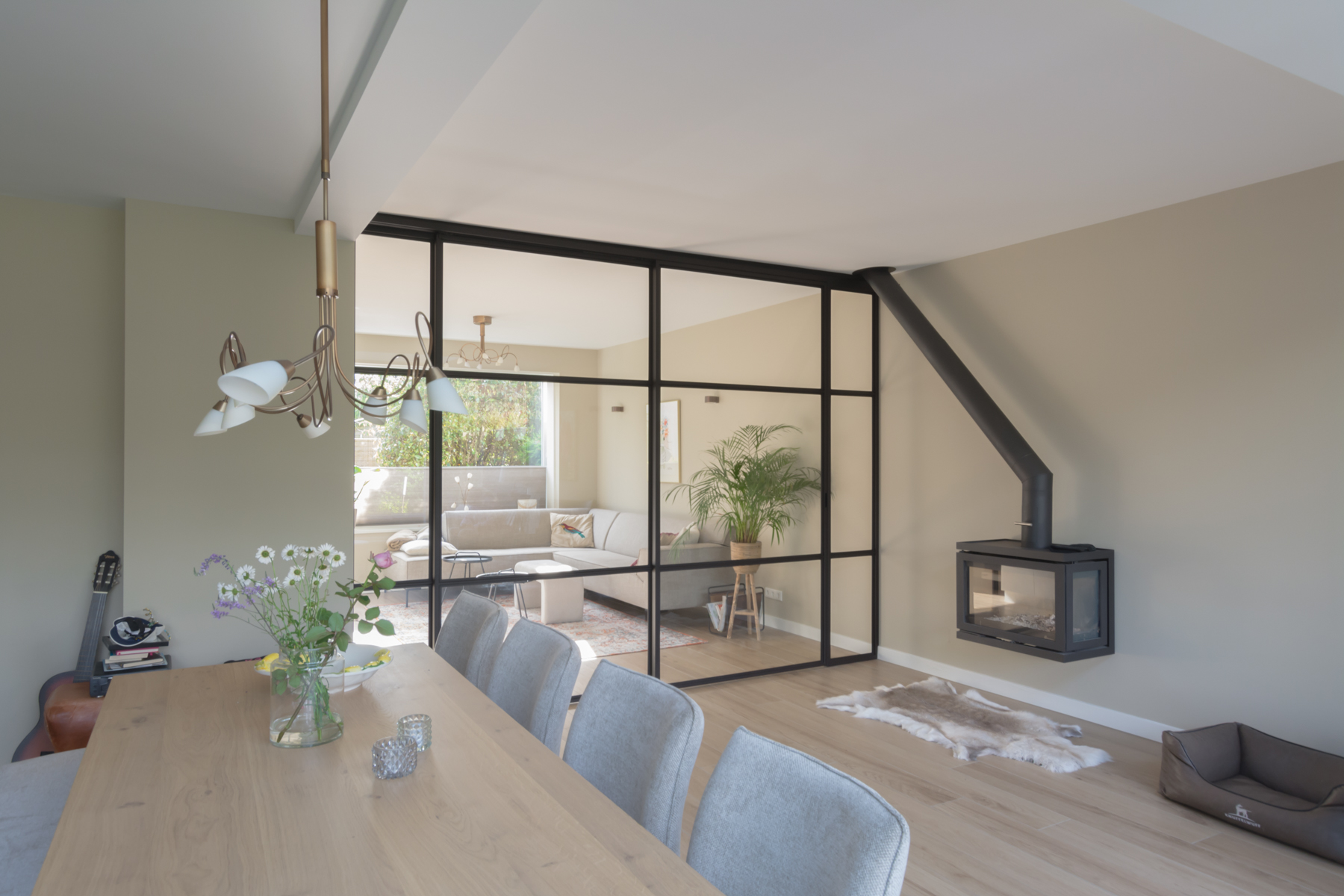 Onze loftdeuren maken gebruik van een prachtig railsysteem! Gecombineerd met de unieke, slanke profielen vormt deze stalen schuifdeur een parel in iedere ruimte. We hanteren een speciale wijze van glaslatten zetten, waardoor beide zijdes van de stalen schuifdeur hetzelfde aanzicht hebben. Dit maakt het eindresultaat nog mooier!