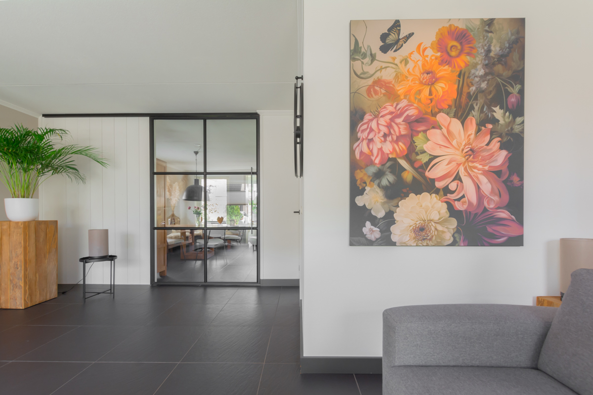 De vlakverdeling kan naar eigen wens worden ingedeeld, of u nu voor een symmetrische 3 vlakverdeling of voor een Mondriaan kiest, het kan allemaal.