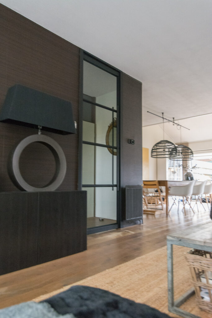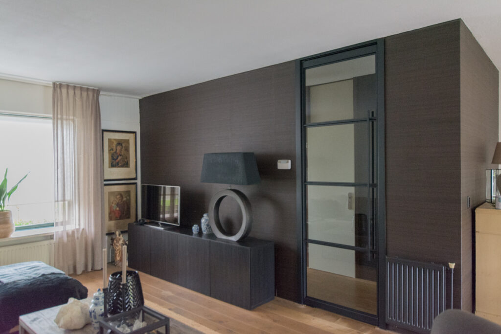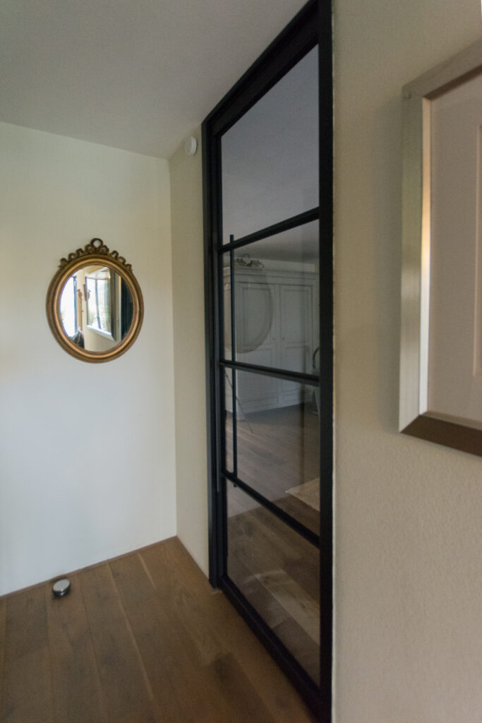 Onze werkzaamheden begonnen met het verwijderen van een witte opdekdeur in een stalen kozijn. Nadat de oude deur met bovenlicht was verwijderd, werden de kozijnen bekleed en de taatsdeur gemonteerd. Dat gebeurt binnen een paar uur en ook de plafond aansluiting wordt natuurlijk niet vergeten. Onderstaande is zonder hak- of breekwerk verricht. Het eindresultaat is met recht een metamorfose van jewelste.